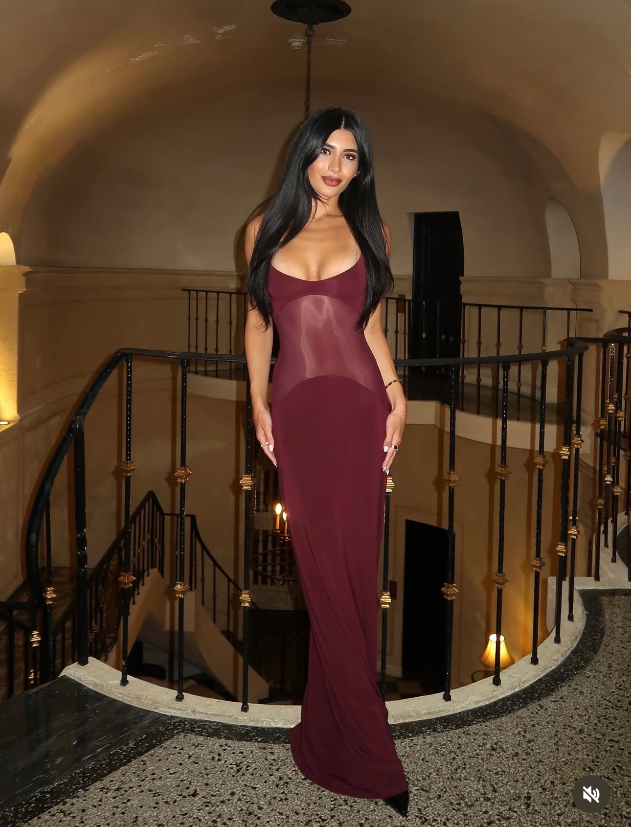 Luxe Irina Sheer panelling Maxi Dress in Cherry