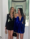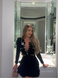 Stunning long sleeve black knit mini dress that fits like a glove. This dress is from the luxe range and has an expensive finish. Featuring a stunning knit like fabric with sequins and sparkles to make you look 1 million dollars. The dress has a hourglass like finish with a flare skirt and can be worn with the buttons open slightly or fully closed.